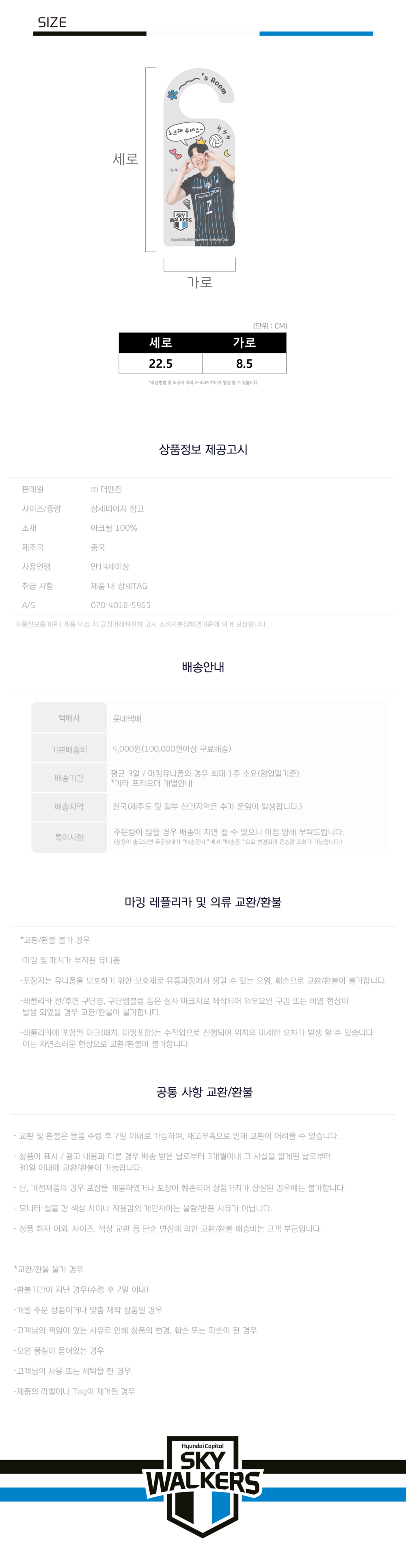 25-26 허수봉 선수 문고리 팻말 화이트&블랙