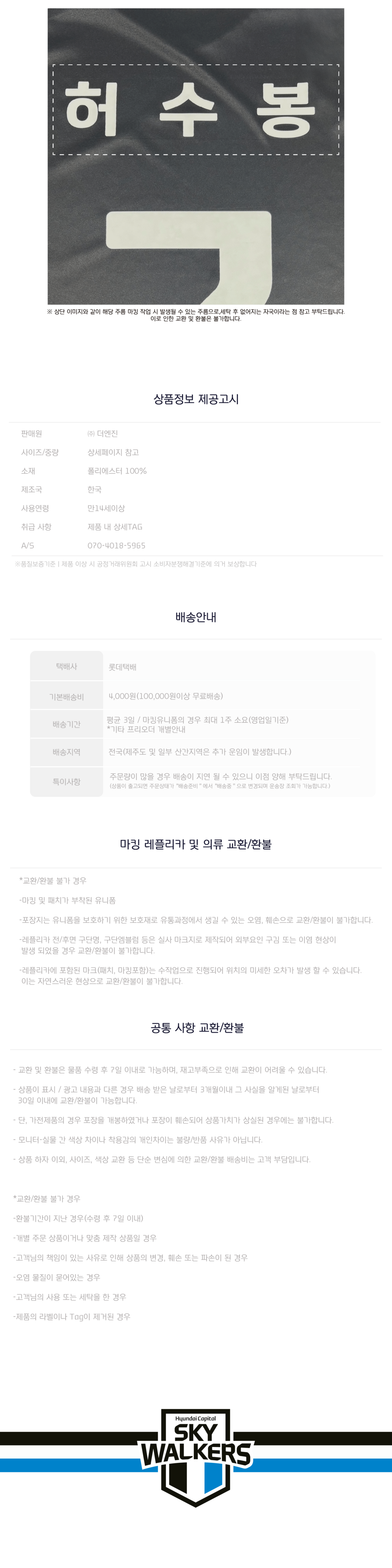 *마킹 유니폼으로 구매 이후 취소가 불가하오니 신중한 구매 바랍니다.