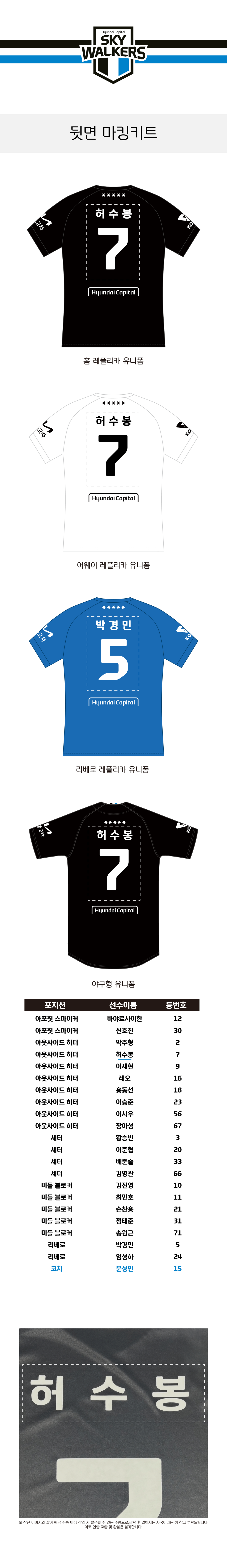 *등번호 마킹은 25-26 시즌 현대캐피탈 스카이워커스 소속 선수에 한해 가능합니다.