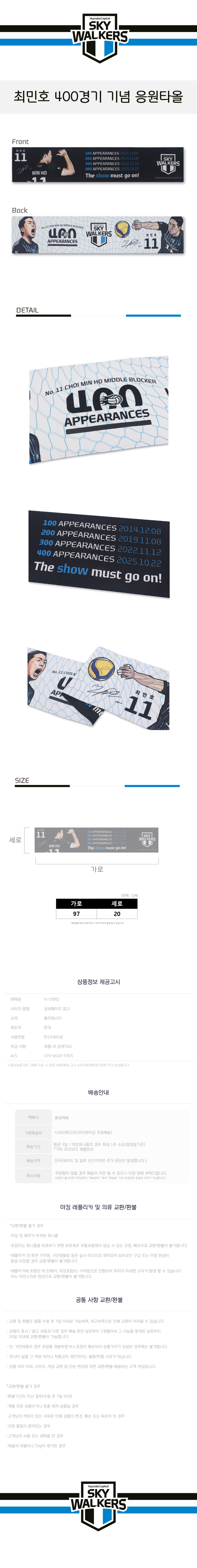 25-26 최민호 선수 400경기 기념 응원 타올