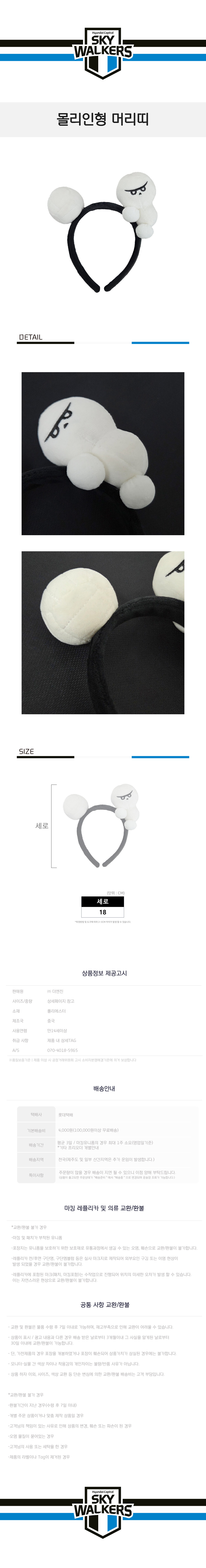 현대캐피탈 스카이워커스 몰리인형 머리띠